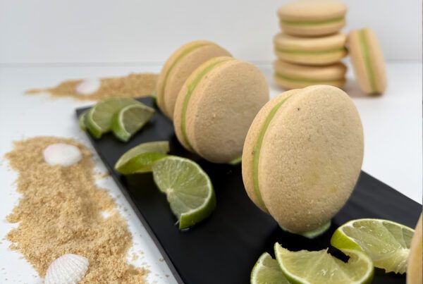 - Formar un cilindro y cortar discos de masa con un grosor de 1/2 cm aproximadamente, hacerle un orificio en el centro de las galletas y rellenarlo con la mermelada el sabor de su preferencia. Ubicarlos sobre la placa previamente engrasada.
